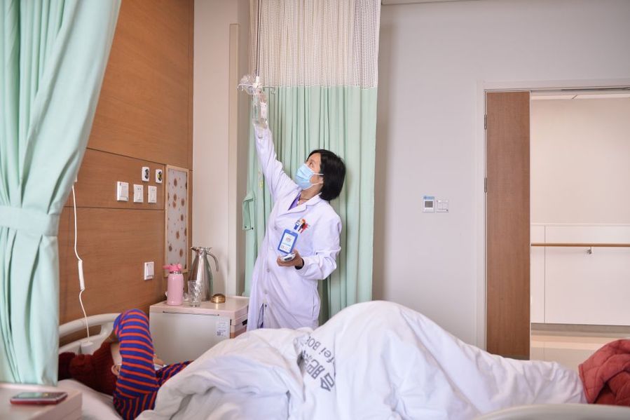 12月19日,在合肥市京東方醫(yī)院,周國紅在病房工作。