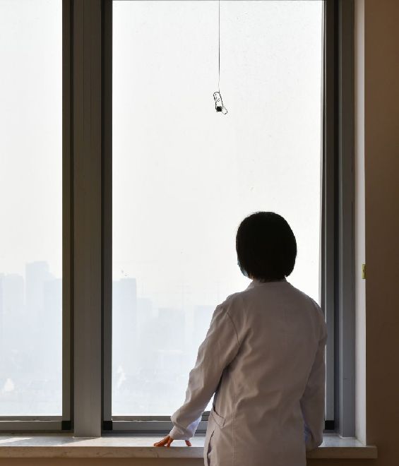 12月19日,在合肥市京東方醫(yī)院,周國紅在午休時間眺望窗外。