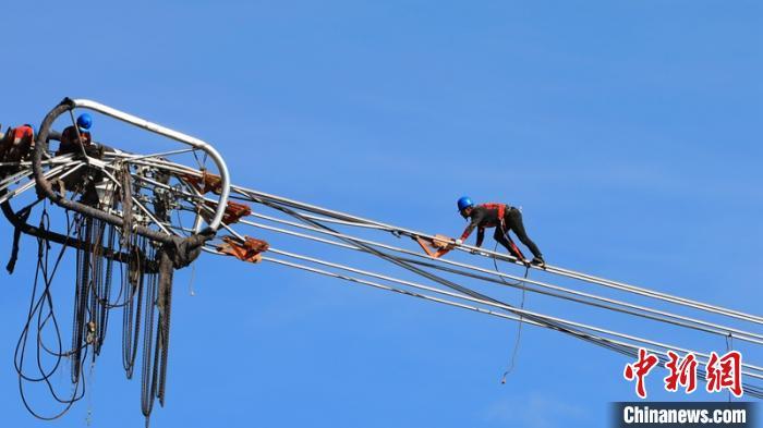 施工人員正在開展線上作業(yè)施工?!盍?攝