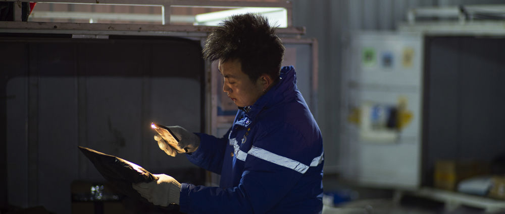 李杰在中通快遞網(wǎng)點(diǎn)分揀快遞(12月16日攝)。