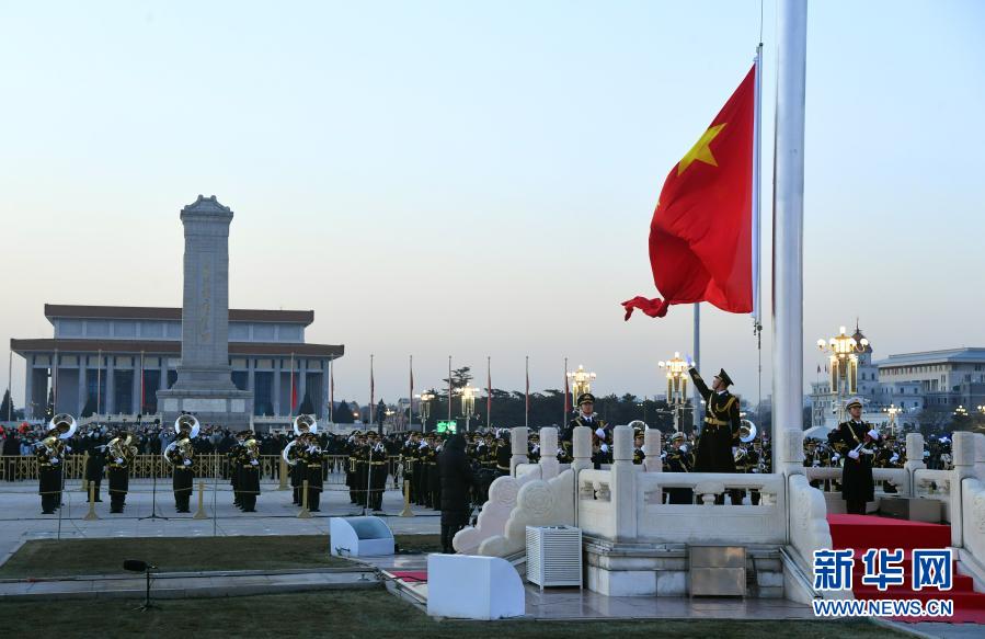 1月1日晨,北京天安門廣場舉行隆重的升國旗儀式。新華社記者 任超 攝