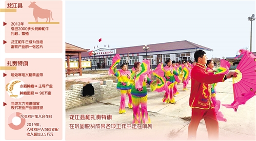龍江縣是著名的雜糧產(chǎn)區(qū)、畜牧大縣。如今,龍江和牛已成為龍江縣畜牧產(chǎn)業(yè)的一張名片,帶領(lǐng)群眾走上致富路?!拔覀冄芯恐贫恕陡邫n肉牛優(yōu)勢特色產(chǎn)業(yè)集群建設(shè)方案》,從2016年起出臺了扶持政策。”龍江縣委副書記孫立軍告訴記者,當(dāng)?shù)匾龑?dǎo)企業(yè)與農(nóng)戶合作養(yǎng)牛,農(nóng)戶每購買兩頭母牛,政府會給予一定的補(bǔ)貼款。此外,政府還向企業(yè)采購凍精幫助農(nóng)戶繁育小牛,小牛犢生長到6個(gè)月達(dá)標(biāo)后,由企業(yè)統(tǒng)一收購,價(jià)格在1.2萬元至1.4萬元不等。