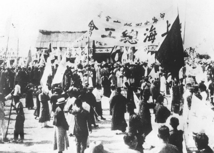 圖為五卅運動爆發(fā)時上??偣挠涡嘘犖?新華社圖片