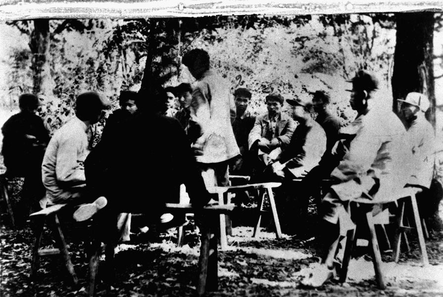 中央執(zhí)行委員會(huì)舉行第一次會(huì)議,中間站著講話的是毛澤東 新華社圖片