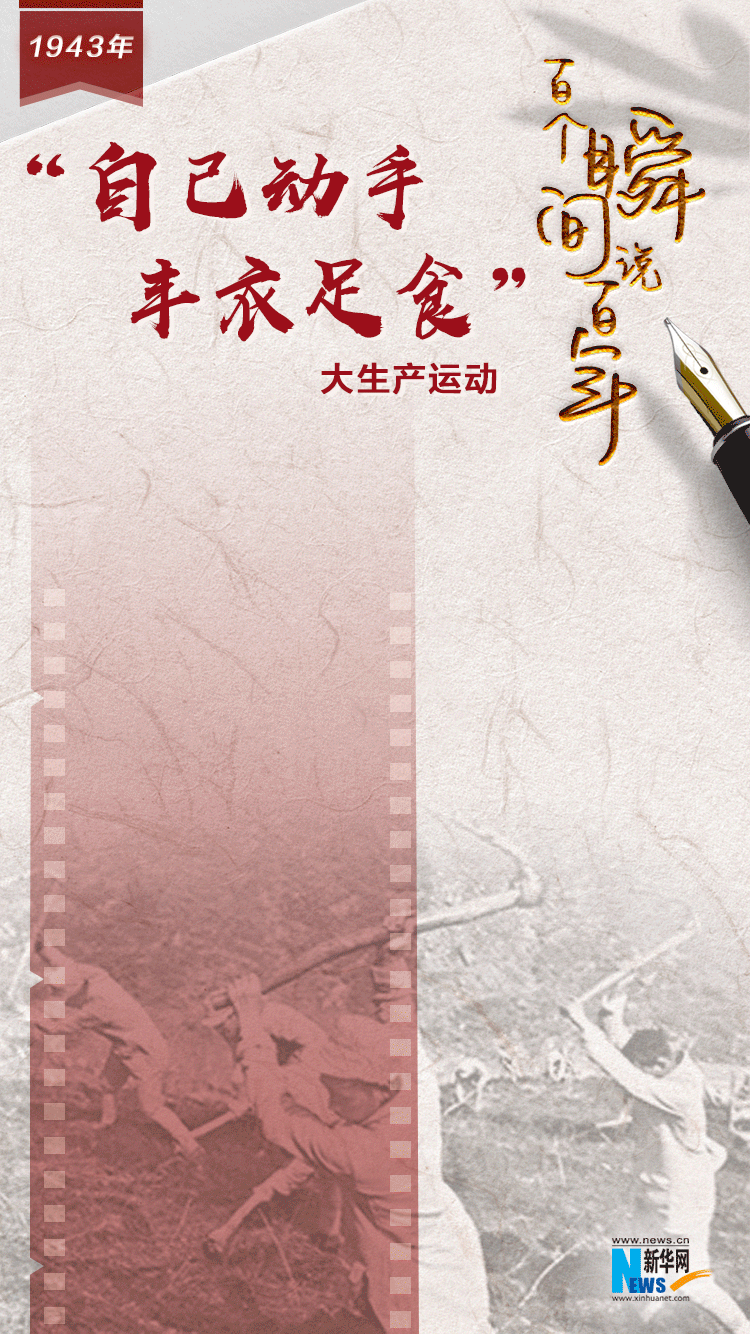 1943年,毛主席在大生產(chǎn)運(yùn)動(dòng)中開荒種地。 新華社圖片