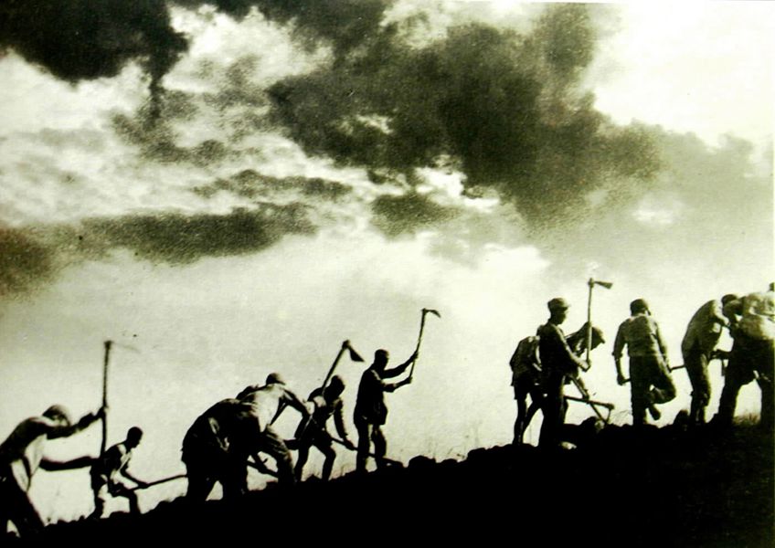 八路軍359旅在南泥灣開荒時(shí)的情景。 新華社圖片
