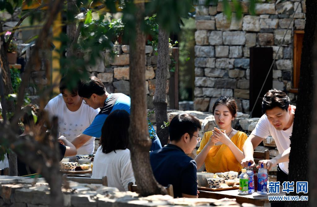 游人在天津市薊州區(qū)西井峪村一座農(nóng)家院內(nèi)休憩(2020年8月21日攝)。新華社記者 李然 攝