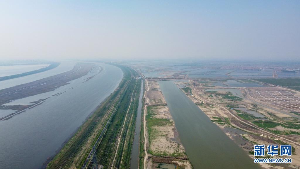這是4月27日拍攝的天津獨(dú)流減河(左)與西西海生態(tài)濕地(右)(無(wú)人機(jī)照片)。新華社發(fā)(孫凡越 攝)