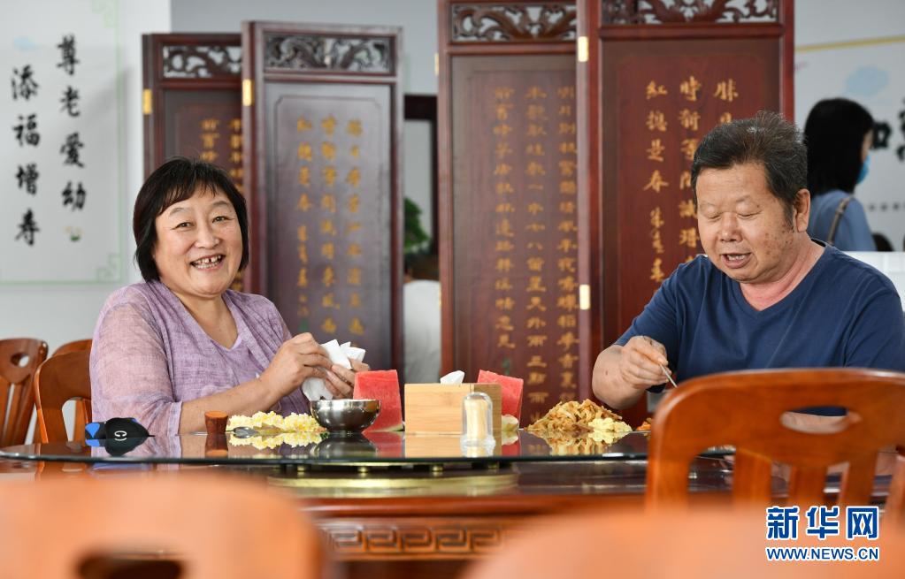 2020年7月7日,老人在付村康養(yǎng)中心(老人家食堂)準(zhǔn)備用餐。新華社記者李然 攝