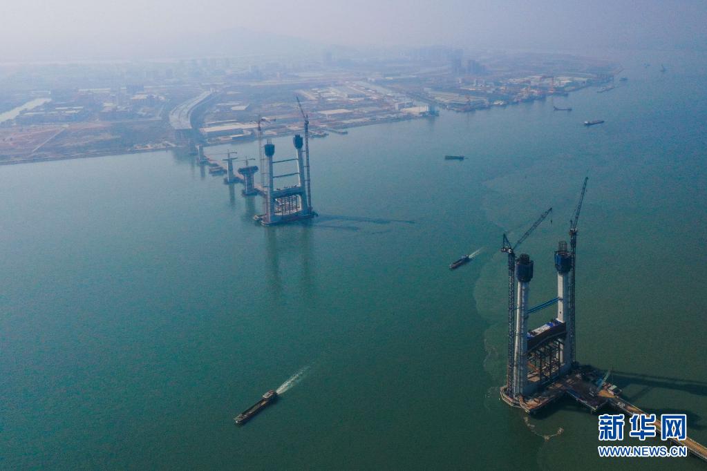 距此正北38公里,內(nèi)伶仃洋里,連接珠江兩岸的又一超級跨海工程建設(shè)正如火如荼——深中通道初具規(guī)模。在中山市珠江西岸的馬鞍島旁,一排巨大橋墩延伸向水天一色處,遠(yuǎn)處伶仃洋大橋主塔已施工至210米高程,中山大橋主塔已施工至150米高程……