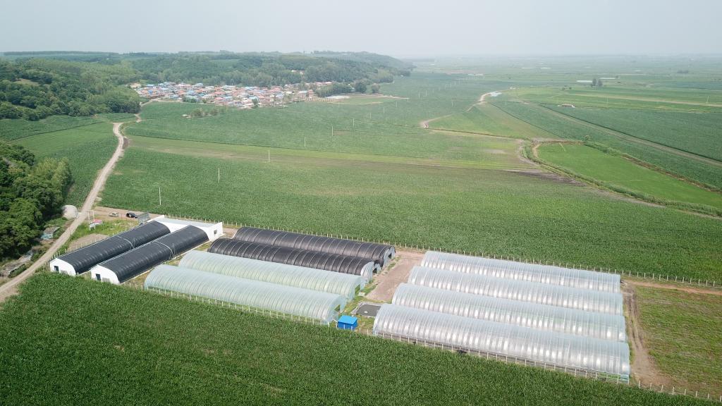 黑龍江省望奎縣海豐鎮(zhèn)恭頭一村的中藥材科研和種苗繁育基地(無人機照片,2020年7月4日攝)。新華社記者王建威攝