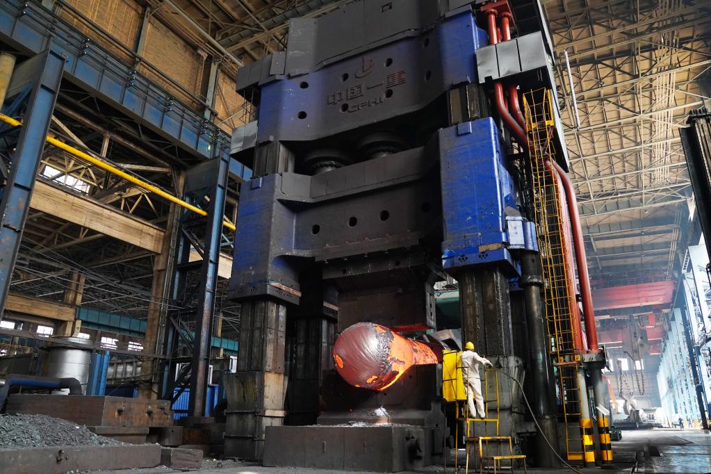 5月初,在中國一重集團有限公司鑄鍛鋼事業(yè)部水壓機鍛造廠,廠長許四海正和工人操作萬噸水壓機,一個紅彤彤的鋼坯在水壓機錘煉下,慢慢變成了大型工件。