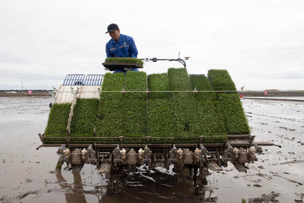 5月18日,在我國“東極”撫遠市的玖成水稻種植專業(yè)合作社,一臺臺高速插秧機正在水稻田中作業(yè)。合作社理事長袁勝海說,五年來,合作社逐步發(fā)展壯大,社員由原來的38戶82人發(fā)展到124戶336人,水稻平均畝產(chǎn)從1000斤提高到1100斤左右,還把“玖成鮮米”銷往北京、江蘇等地。