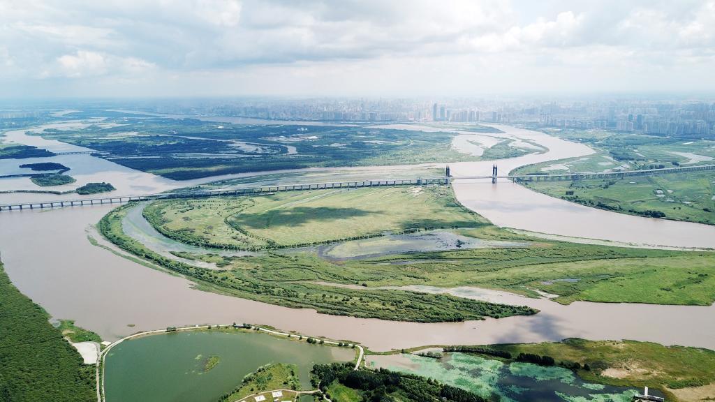 松花江哈爾濱段的灘涂濕地(2019年8月1日攝)。新華社記者王建威攝