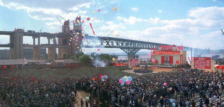 1968年12月29日,南京市5萬(wàn)多軍民歡聚在江邊橋頭,隆重舉行大會(huì),慶祝南京長(zhǎng)江大橋全面建成。慶祝大會(huì)結(jié)束后,紅色的信號(hào)彈騰空而起,在一片鞭炮和鑼鼓聲中,100多輛滿載南京群眾代表的彩車徐徐通過(guò)公路橋。頓時(shí),大江南北,橋上橋下,車內(nèi)車外,一片歡騰,歡呼聲震撼大地,響徹云霄。