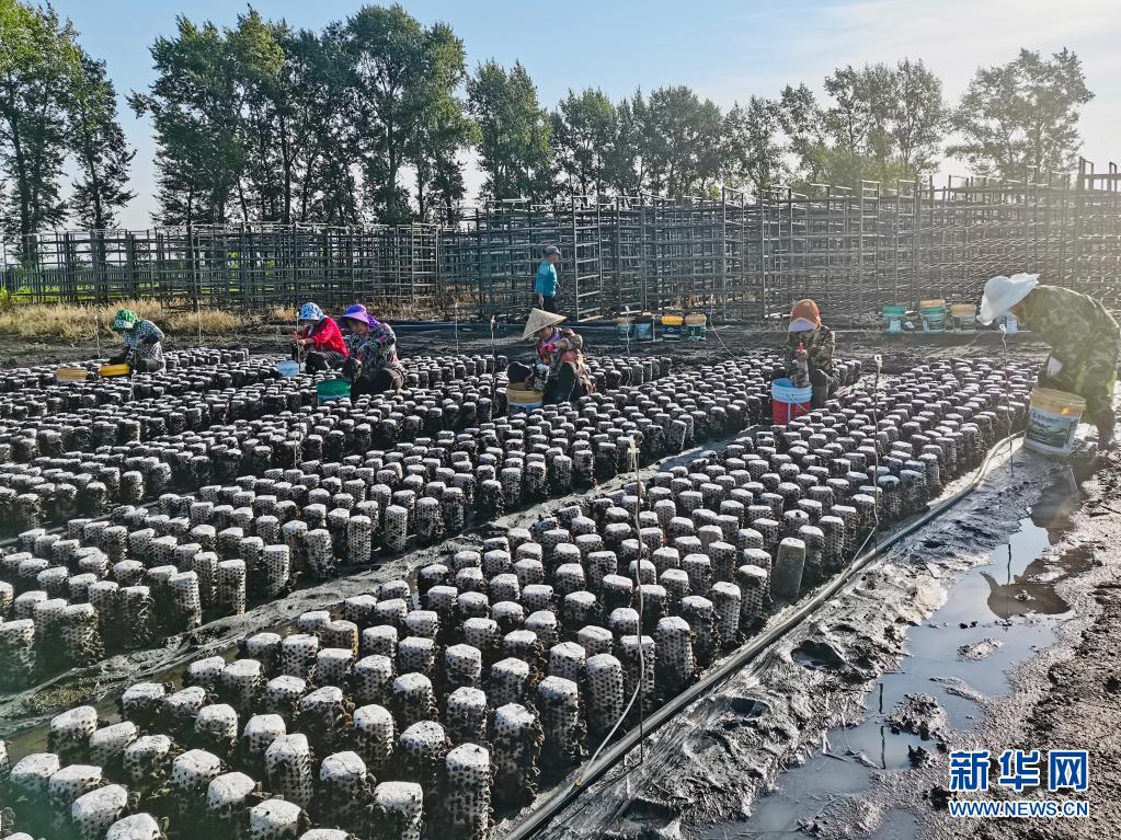 在黑龍江省寶清縣寶清鎮(zhèn)雙泉村的食用菌基地,村民們在采摘木耳(7月3日攝)。新華社發(fā)