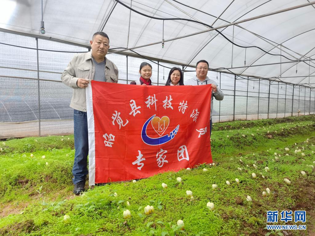 2020年6月3日,西南醫(yī)科大學(xué)副教授夏紀(jì)毅(右一)與同事在四川涼山彝族自治州昭覺縣火普村考察靈芝種植產(chǎn)業(yè)時合影。新華社發(fā)