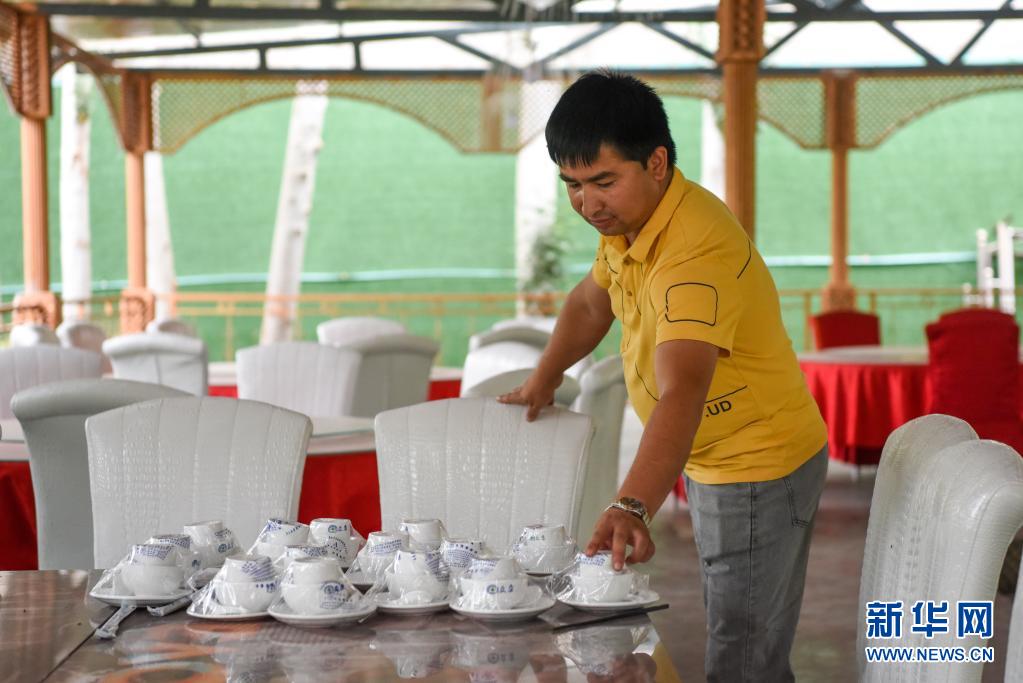 7月5日,在新疆阿克蘇市依干其鄉(xiāng)巴格其村,村民在自己經(jīng)營的農(nóng)家樂里忙碌。新華社記者 丁磊 攝