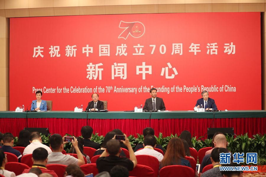 9月24日,慶祝中華人民共和國(guó)成立70周年活動(dòng)新聞中心在北京梅地亞中心二層新聞發(fā)布廳舉辦第一場(chǎng)新聞發(fā)布會(huì)。圖為新聞發(fā)布會(huì)現(xiàn)場(chǎng)。新華網(wǎng)記者 陳競(jìng)超 攝