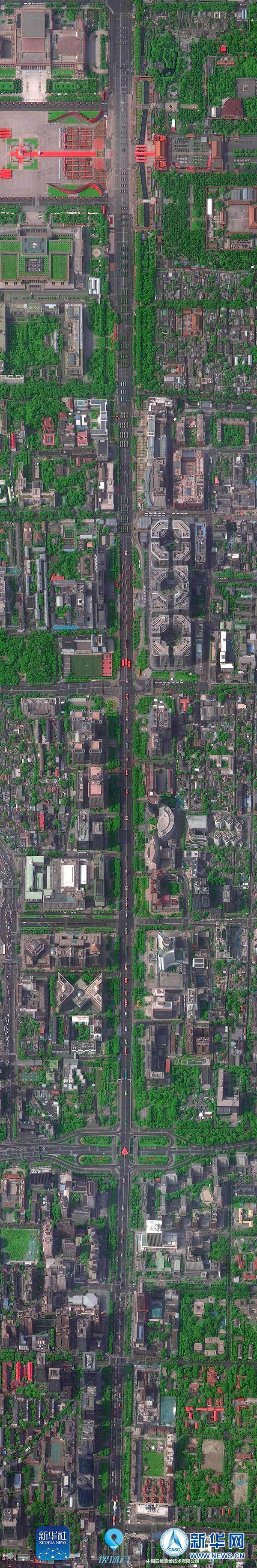 這是“高景1號”拍攝的北京長安街全畫幅衛(wèi)星圖(10月1日攝)。 10月1日上午,慶祝中華人民共和國成立70周年大會在北京天安門廣場隆重舉行。新華社聯(lián)合多家單位調(diào)用多顆國產(chǎn)衛(wèi)星俯瞰閱兵,從“最高機位”發(fā)回這三張珍貴的長安街全畫幅衛(wèi)星圖。 新華社發(fā)(中國四維測繪技術有限公司提供)