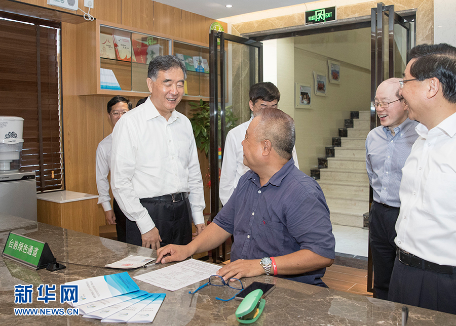 6月6日至7日,中共中央政治局常委、全國政協(xié)主席汪洋在廈門出席第十屆海峽論壇期間,就兩岸經(jīng)濟(jì)文化交流合作情況進(jìn)行調(diào)研。這是6月7日,汪洋在廈門市湖里區(qū)殿前街道興隆社區(qū)便民服務(wù)大廳了解臺胞在閩生活工作情況。新華社記者 王曄 攝
