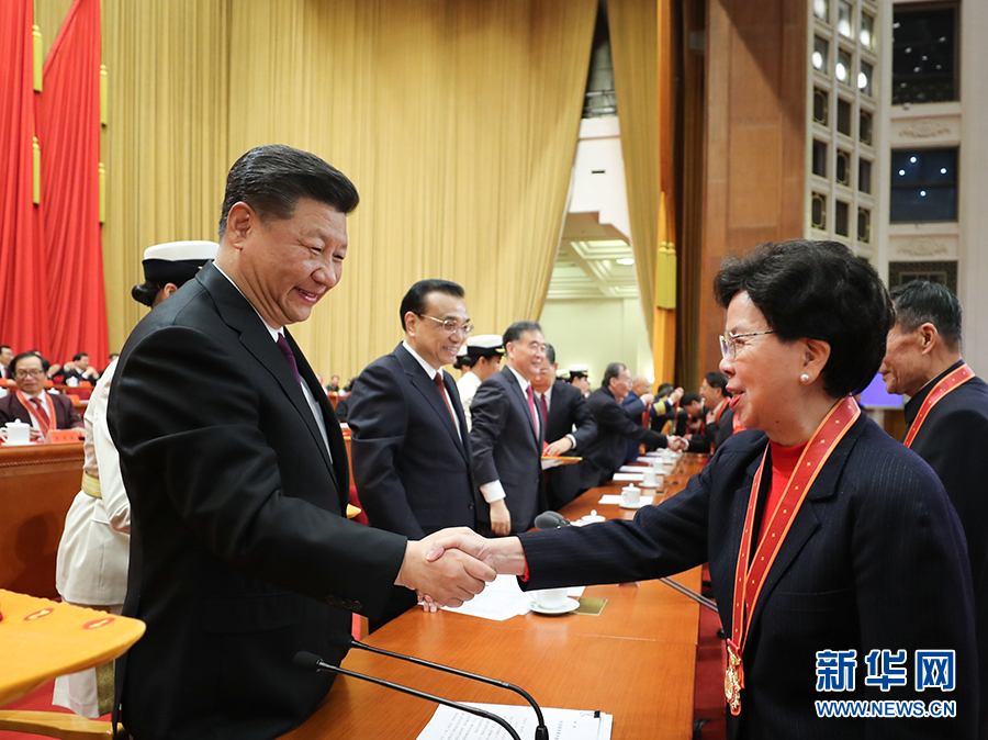 12月18日,慶祝改革開放40周年大會(huì)在北京人民大會(huì)堂隆重舉行。中共中央總書記、國(guó)家主席、中央軍委主席習(xí)近平在大會(huì)上發(fā)表重要講話。這是習(xí)近平等為獲得改革先鋒稱號(hào)人員代表頒獎(jiǎng)。 新華社記者 鞠鵬 攝