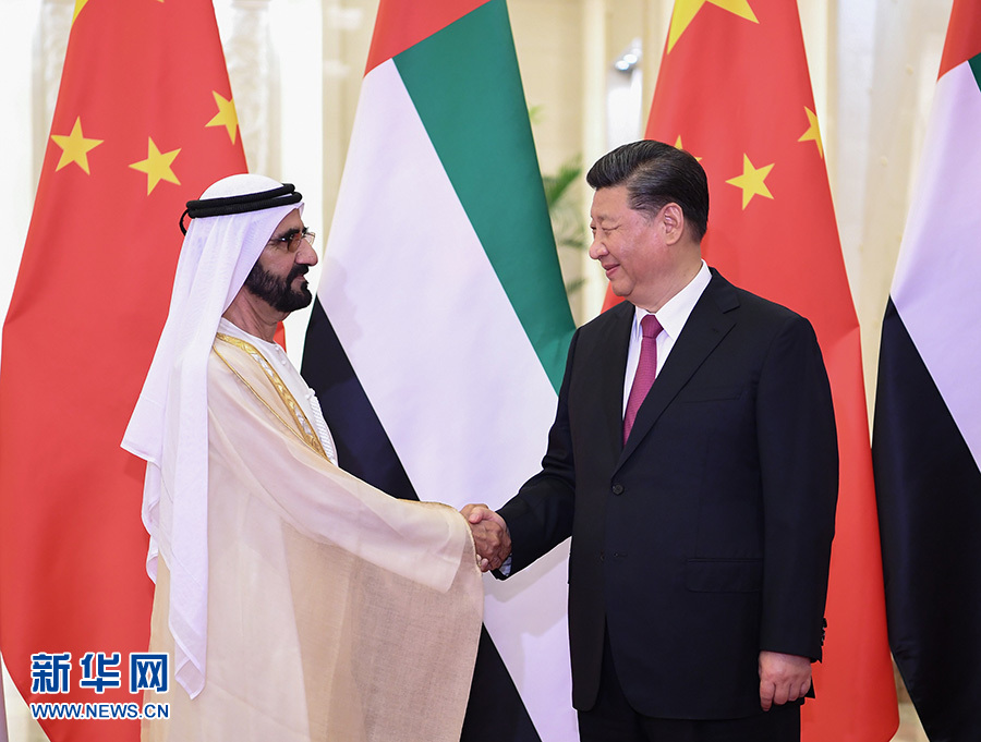 習(xí)近平指出,去年7月我訪(fǎng)問(wèn)阿聯(lián)酋期間,兩國(guó)宣布建立全面戰(zhàn)略伙伴關(guān)系,揭開(kāi)中阿關(guān)系發(fā)展新篇章。中方視阿聯(lián)酋為共建“一帶一路”的重要合作伙伴。雙方要穩(wěn)步推進(jìn)以能源合作為主軸、以投資和基礎(chǔ)設(shè)施建設(shè)為兩翼、以高新技術(shù)為增長(zhǎng)點(diǎn)的務(wù)實(shí)合作。下階段要對(duì)接創(chuàng)新發(fā)展戰(zhàn)略,打造兩國(guó)合作新增長(zhǎng)點(diǎn)。要深化打擊恐怖主義和極端勢(shì)力等安全領(lǐng)域合作,共同維護(hù)兩國(guó)和地區(qū)安全穩(wěn)定。副總統(tǒng)先生提出的“擁抱中國(guó)”計(jì)劃深受阿聯(lián)酋民眾歡迎,要不懈推動(dòng)兩國(guó)人文交流。中方支持阿方明年舉辦中東地區(qū)首屆世博會(huì)。