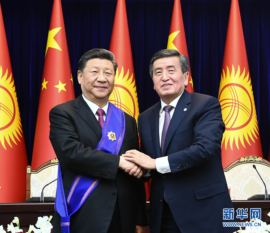 習(xí)近平出席儀式 接受吉爾吉斯斯坦總統(tǒng)熱恩別科夫授予“瑪納斯”一級勛章