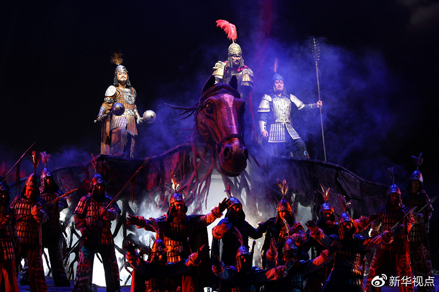 ?2018年6月7日晚,中央歌劇院原創(chuàng)民族歌劇《瑪納斯》在北京天橋藝術(shù)中心上演。新華社記者鄭煥松 攝