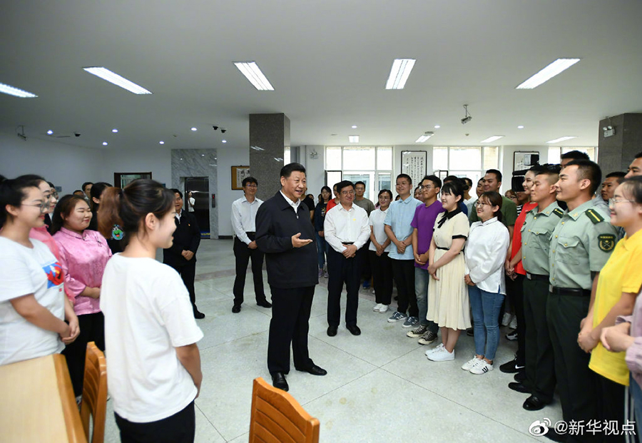 16日上午,正在內(nèi)蒙古考察調(diào)研的習(xí)近平總書記來到內(nèi)蒙古大學(xué),走進圖書館同學(xué)生們親切交談。習(xí)近平指出,少年強則中國強。看到年青人健康聰明、奮發(fā)向上,充滿正能量,心里十分高興。長江后浪推前浪,青出于藍而勝于藍,未來是屬于年青人的。在中華民族偉大復(fù)興的進程中,你們生逢其時,何其幸也。再過30年,到本世紀中葉實現(xiàn)第二個百年奮斗目標的時候,你們正好是國家的骨干和棟梁。大家要志存高遠、腳踏實地,學(xué)好知識,打好基礎(chǔ),增長才干,將來為中華民族偉大復(fù)興貢獻自己的智慧和力量。 (文字:張曉松、朱基釵 攝影:謝環(huán)馳、李學(xué)仁)