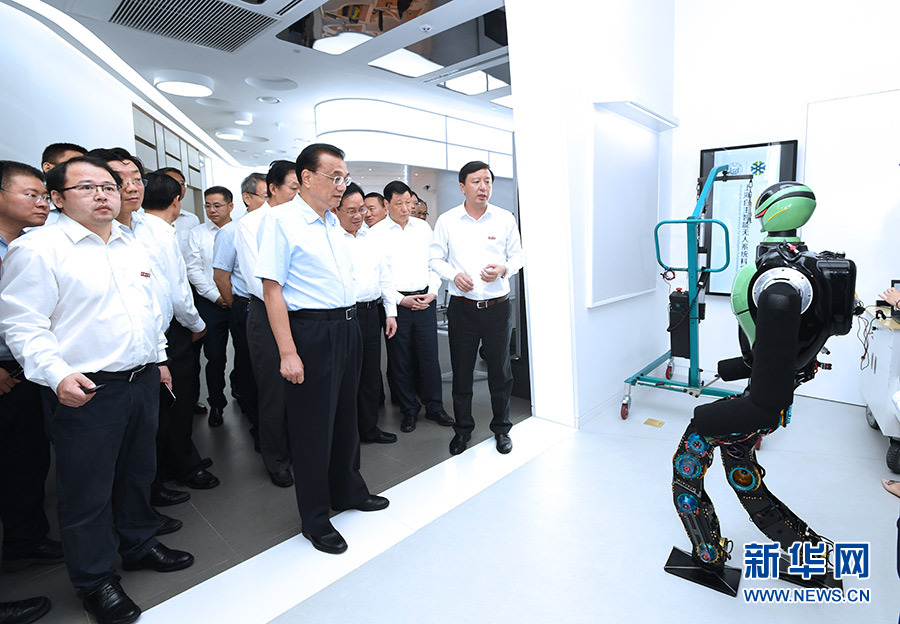 7月22日至23日,中共中央政治局常委、國(guó)務(wù)院總理李克強(qiáng)在上海考察。這是7月23日,李克強(qiáng)在上海張江人工智能島察看3D視覺遠(yuǎn)程醫(yī)療、智能神經(jīng)仿生、智能無人系列技術(shù)等創(chuàng)新成果。 新華社記者 饒愛民 攝