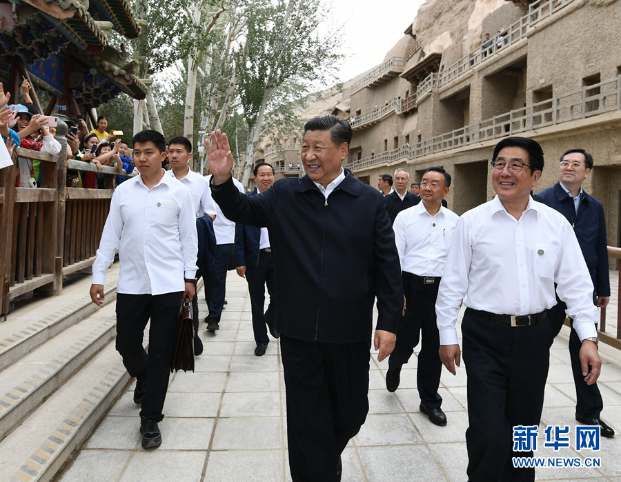 8月19日至22日,中共中央總書記、國家主席、中央軍委主席習近平在甘肅考察。這是19日下午,習近平在敦煌莫高窟考察調(diào)研時,向正在參觀的游客親切招手致意。 新華社記者 謝環(huán)馳 攝