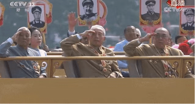 ?一曲《紅旗頌》奏響,當(dāng)“致敬方陣”的禮賓車上,老一輩黨和國家、軍隊(duì)領(lǐng)導(dǎo)人親屬代表,老一輩建設(shè)者和親屬代表,新中國成立前參加革命工作的老戰(zhàn)士,老一輩軍隊(duì)退役英模、民兵英模和支前模范代表等從天安門前經(jīng)過時,全場所有人自發(fā)起立,向英雄們致以崇高的敬意。  ?