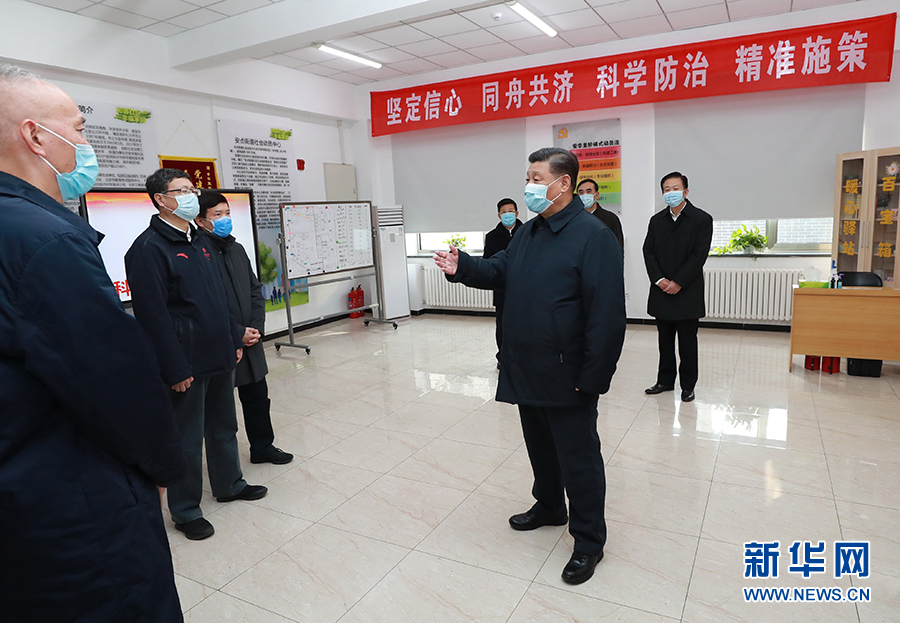 2月10日,中共中央總書記、國家主席、中央軍委主席習(xí)近平在北京調(diào)研指導(dǎo)新冠肺炎疫情防控工作。這是習(xí)近平在朝陽區(qū)安貞街道安華里社區(qū),了解基層一線疫情聯(lián)防聯(lián)控情況。 新華社記者 龐興雷 攝