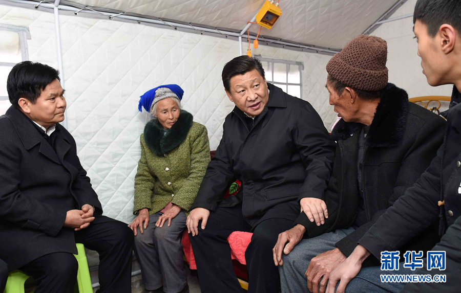 2012年12月30日,習近平在河北省阜平縣龍泉關鎮(zhèn)駱駝灣村看望慰問困難群眾。 新華社記者 蘭紅光 攝