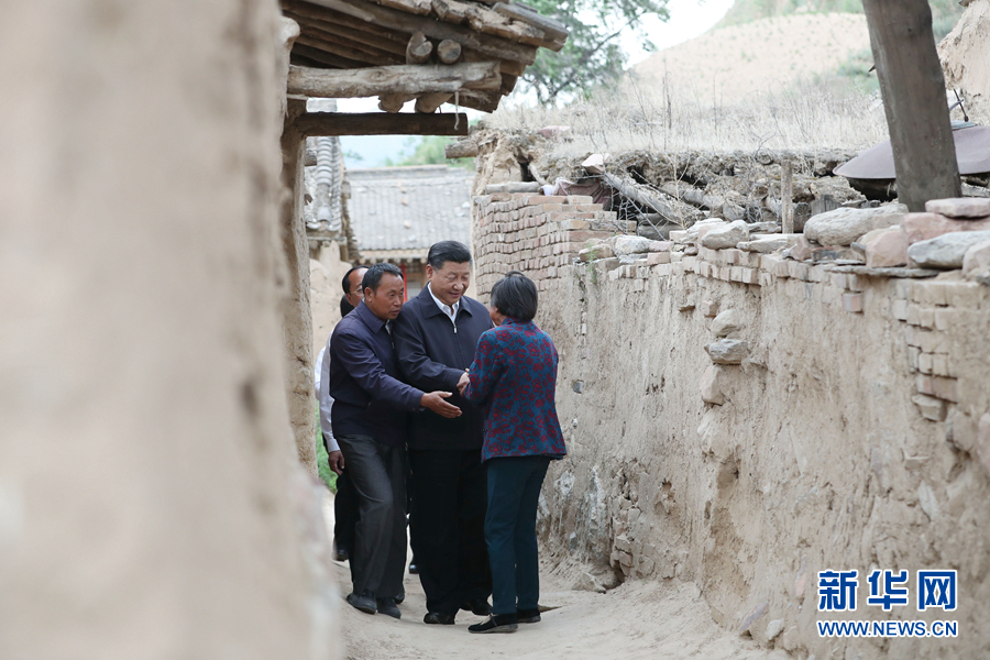 2017年6月21日下午,習近平在山西省忻州市岢嵐縣趙家洼村看望特困戶王三女一家。?新華社記者 龐興雷 攝