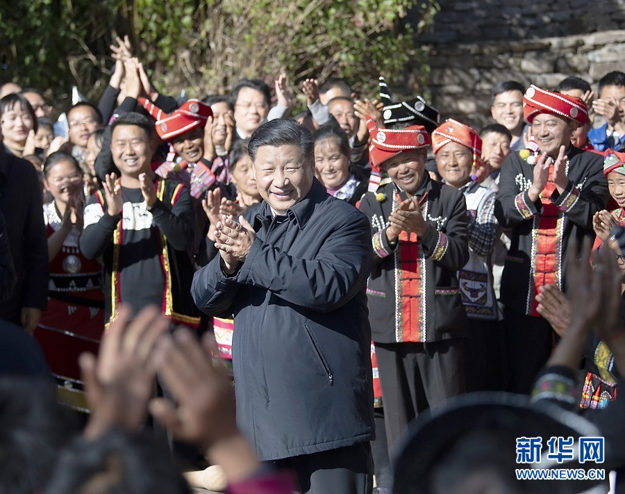 2020年1月19日,習近平在云南省騰沖市清水鄉(xiāng)三家村中寨司莫拉佤族村看望鄉(xiāng)親們,并向大家送上新春祝福。新華社記者 燕雁 攝