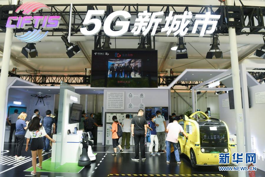 觀眾在2020年中國國際服務貿(mào)易交易會5G通信服務專題展區(qū)參觀(9月7日攝)。新華社記者 魯鵬 攝
