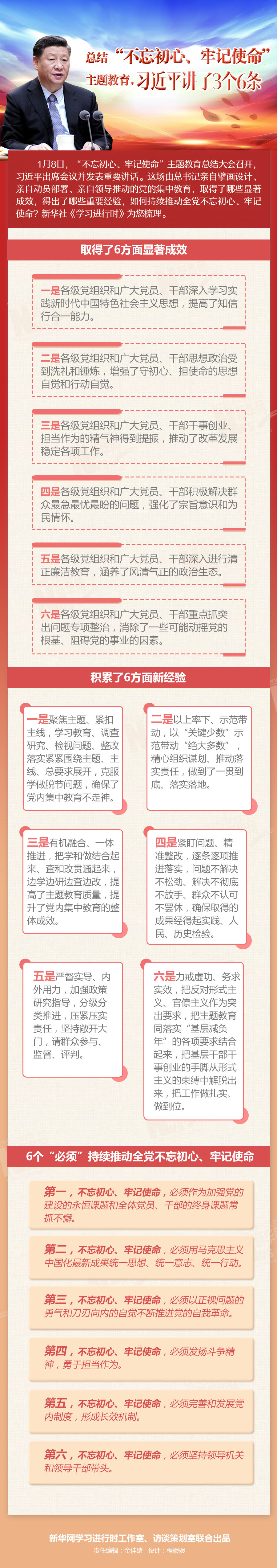 總結(jié)“不忘初心、牢記使命”主題教育,習(xí)近平講了3個(gè)6條