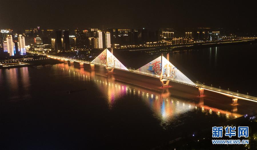 4月8日零時起,武漢市正式解除離漢離鄂通道管控措施,全市景觀照明開啟(無人機(jī)照片)。新華社記者 程敏 攝