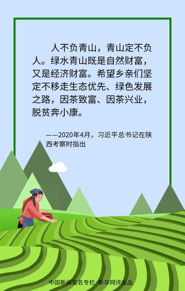 推進(jìn)綠色發(fā)展,讓綠水青山造福人民群眾,不是權(quán)宜之計(jì),而是長久之策,必須咬定青山不放松,風(fēng)雨無阻向前行。面對(duì)新冠肺炎疫情沖擊和世界經(jīng)濟(jì)衰退影響,堅(jiān)定不移打贏脫貧攻堅(jiān)收官戰(zhàn),要增強(qiáng)生態(tài)文明建設(shè)的戰(zhàn)略定力,向綠色轉(zhuǎn)型要出路、向生態(tài)產(chǎn)業(yè)要?jiǎng)恿?,通過發(fā)展綠色產(chǎn)業(yè)吸引大量就業(yè),通過發(fā)展休閑旅游釋放無限商機(jī)。端好綠水青山“金飯碗”,念活綠色經(jīng)濟(jì)“致富經(jīng)”,幸福生活和可持續(xù)發(fā)展將更有支撐,美麗中國將鋪展開新的畫卷。(文字:馬若虎 海報(bào):滕華)