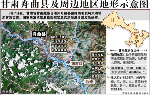 舟曲縣位于甘肅南部,甘南藏族自治州東南部,東鄰武都縣,北接宕昌縣,西南與迭部縣、文縣和四川省九寨溝縣接壤。全縣總面積3010平方公里,轄20個鄉(xiāng)、2個鎮(zhèn),210個行政村,總?cè)丝?3.47萬人,其中藏族4.4萬人,占32.78%。 舟曲縣地處南秦嶺山區(qū),東南至西北走向的岷山山系貫穿全境。氣候?qū)贉嘏瘞^(qū),海拔高度在1173-4504米之間。地勢西北高,東南低,地形復(fù)雜,溝壑縱橫,高低懸殊,是典型的高山峽谷區(qū),氣候垂直變化明顯,常有“山下桃花盛開,山上白雪皚皚”的自然景觀,同時也表現(xiàn)出“十里不同天,一山有四景”的氣候特點。春季溫暖回升快而穩(wěn),秋季溫涼陰雨多。年均降水量400-800毫米,年日照時數(shù)1842小時,冬無嚴寒,夏無酷暑,素有”隴上桃花源”之稱。 |