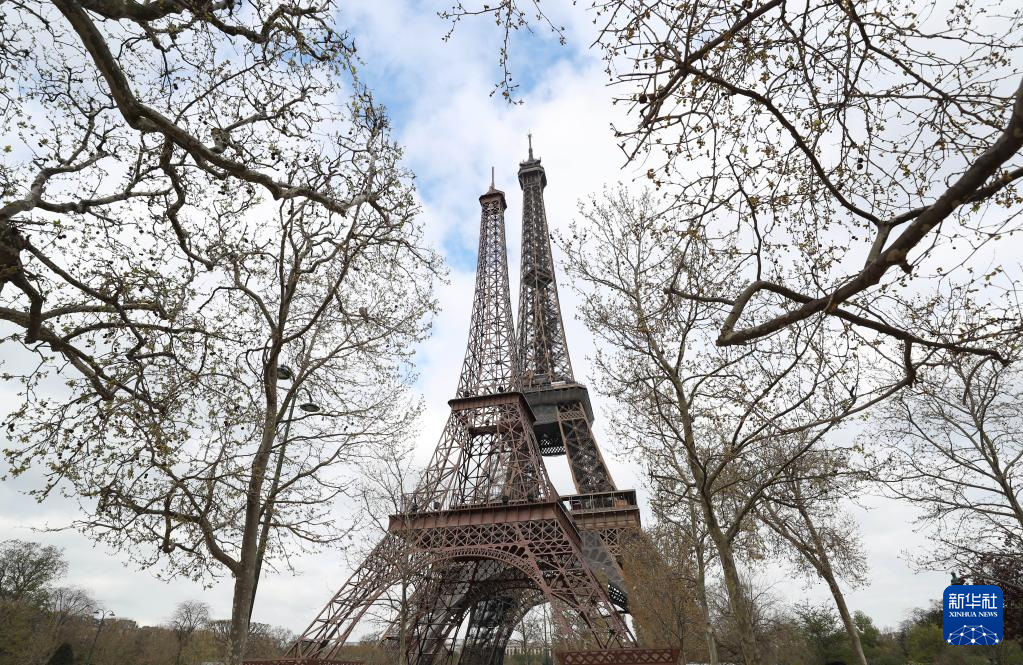 这是4月3日在法国巴黎拍摄的埃菲尔铁塔(右)和“小埃菲尔铁塔”。
