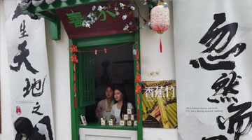 5月10日,年轻人在山东济宁环西北里文创街区体验。