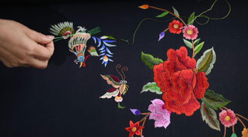 西汉彩绘人物车马镜局部彩绘图案(8月25日摄)。