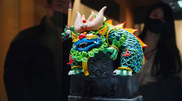 1月12日,观众在拍摄画作《上海迪士尼》。