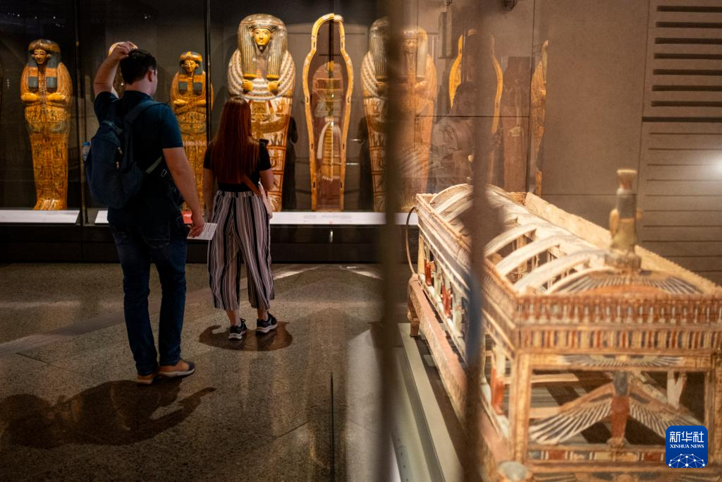 12月20日,游客在埃及吉萨的大埃及博物馆观赏法老图坦卡蒙的神龛。
