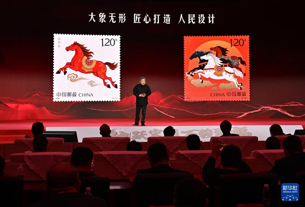 1月5日,邮票设计师阎炳武在活动现场讲述《丙午年》特种邮票的设计艺术特点。