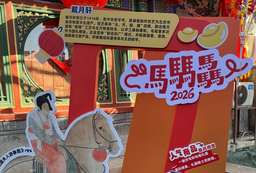 更让年轻人挪不动脚步的,是厂甸庙会首次携手徐悲鸿纪念馆推出的“马踏祥云”联名限定纪念印章。集章处前排起了长龙,一位正在盖章的姑娘兴奋地说:“为了这套章,我专门从通州赶过来的!徐悲鸿画马,厂甸庙会寻马,这波联动太应景了。”一枚小小的印章,串联起艺术经典与节俗文化,也精准击中了年轻人追逐“仪式感”“限定款”的情绪需求。