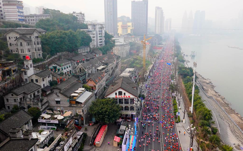 3月2日,2025重庆马拉松在重庆市南岸区南滨路海棠烟雨公园鸣枪开跑。新华社记者 刘潺 摄